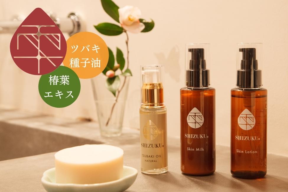 [雫 SHIZUKU]スキンケアセット / 椿石けん 化粧水 乳液 椿オイル 2か月分の4点セット