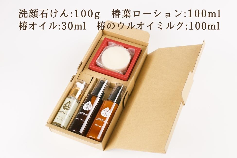 洗顔石けん100g・化粧水・乳液100ml・椿オイル30ml
